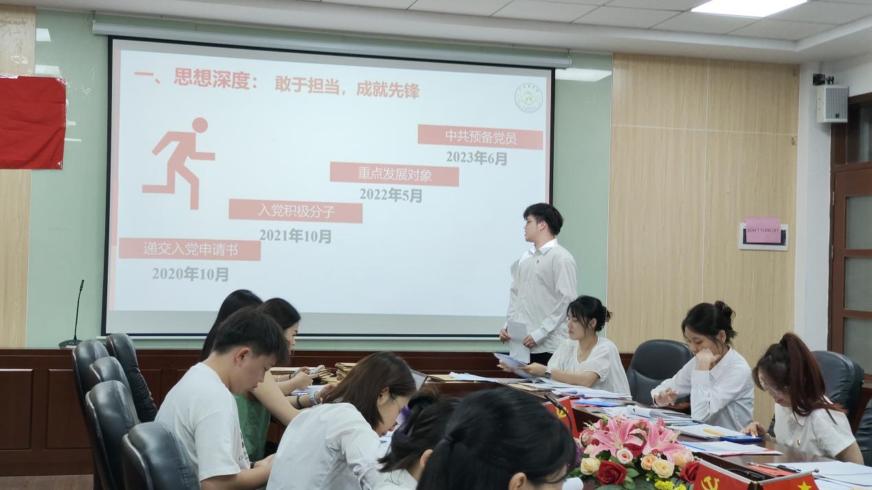 beat365平台官方网站学生第四党支部21名申请转正的预备党员汇报一年来思想、学习、工作、生活情况(主要包括政治理论学习、专业学习、党员作用发挥情况等)、党组织交给的任务完成情况、自身还存在问题以及整改情况。答辩小组成员进行答辩提问题目抽取回答。