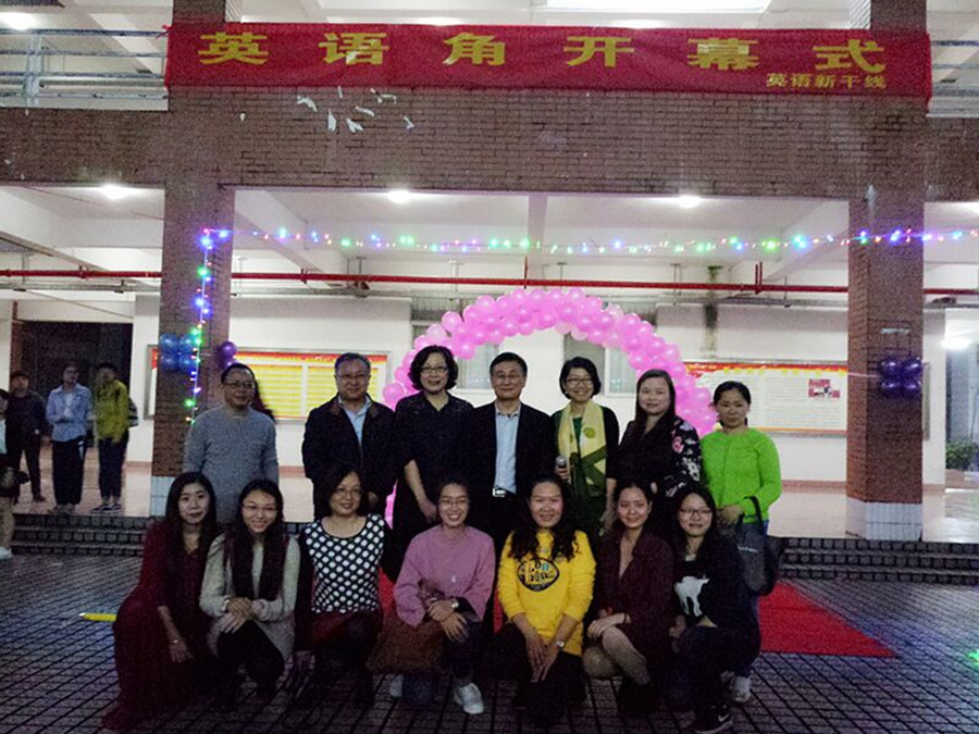 3月20日晚,beat365官网“英语角”于第一教学楼架空层隆重揭开序幕。副校长刘根正、教务处处长贺浪萍、beat365平台官方网站院长马蔚兰、副院长龙海英以及李卓华等老师亲临现场参加此次开幕式。