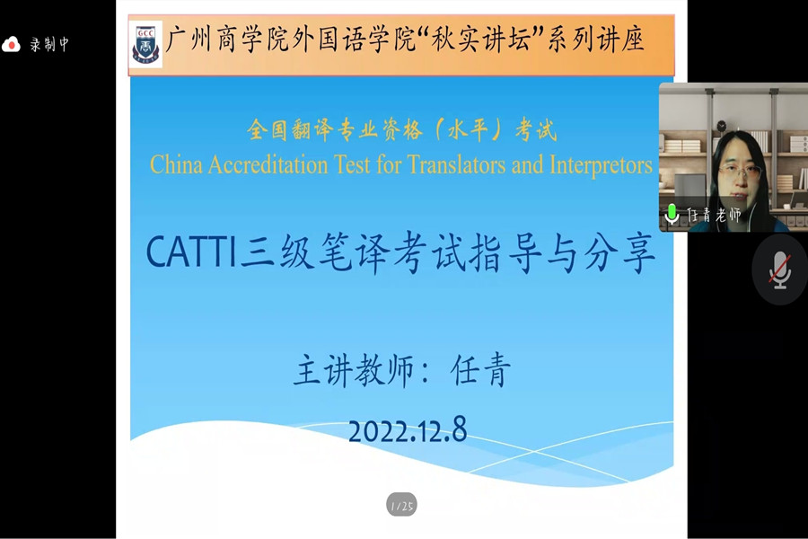 为进一步服务beat365官网学子考级考证,开展“我为群众办实事”实践活动,beat365官网教工第一党支部联合院学生会于12月8日下午,通过腾讯平台开展2022年“秋实讲坛”系列讲座之CATTI三级笔译分享交流会。本次交流会由beat365官网商务英语系“双师双能型”教师任青和beat365官网第一党支部组织委员、商务英语系专任教师张珊主讲,教工第一党支部书记何瑞玉、教工第一党支部宣传委员朱渺以及beat365官网200多名学生积极参与到此次讲座中。