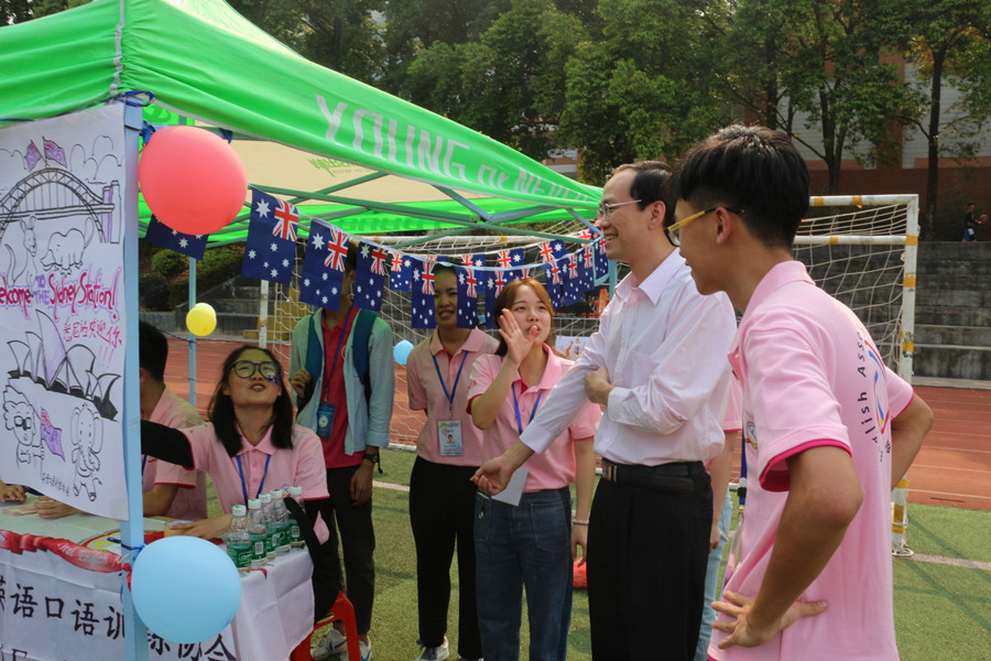 学生社团是校园文化建设的重要阵地,也是应用型人才培养的重要载体。为推进外语类社团文化建设,拉开外语类各类学术赛事的序幕,4月1日下午,beat365官网在学校田径场举行了以“旅行,从广商出发”为主题的外语专业社团展示活动。商务英语协会、德语协会、日语协会的等七个社团以摊位展示的方式宣传国际文化,beat365官网党总支书记徐超 、辅导员黄玉亭和来自不同学院不同年级将近600多人一起参加了本次活动。