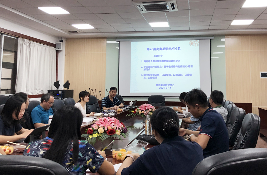 beat365官网“商务英语学术沙龙”第78期活动于15日15:50在第二行政楼308会议室举行。专业负责人曾利沙教授针对现有“综合商务英语”教材和教学实践中存在的若干问题,基于“体验-建构融通式”教学模式,提出编写辅助教材的系统性方法和示范性体例。商务英语专业全体教师及部分英语专业教师参加了本次沙龙。