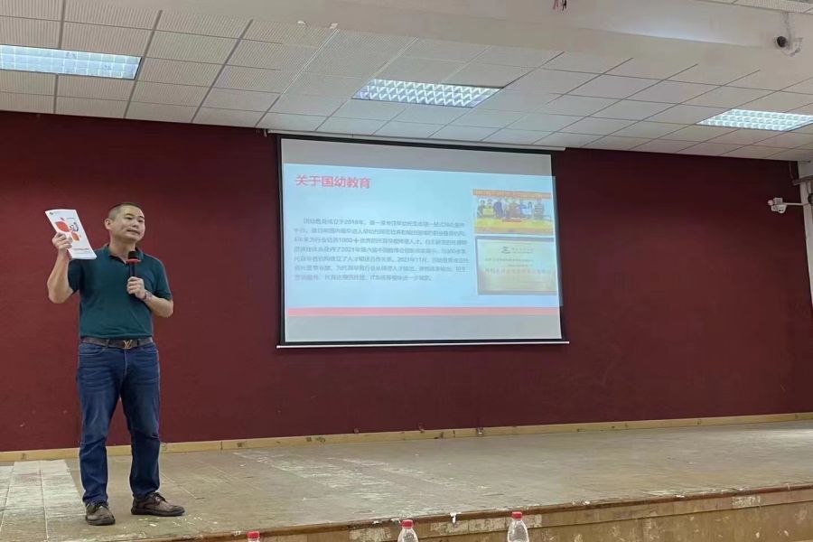 国幼教育科技董事长黄德生对早幼托育行业的背景、发展等方面进行详细解读,让同学们对行业有了深入的了解,并同时以PPT的形式向学生们介绍了该企业的基本简介、成长历程、企业布局以及业务范围,从全方面、多层次展现了该企业所具备的就业优势和未来发展规划。此外,黄德生以视频的形式向同学们展示目前国内对于早幼托育行业的政策与扶持,进一步展现了该行业发展潜力。黄德生表示,三百六十行,行行出状元,希望同学们在对未来的职业生涯规划中能有一个明确的方向,用自己的所学所得去为自己的未来不断努力奋斗。