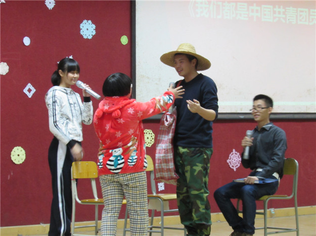 活动伊始,学院艺术团带给了台下观众炫丽十足的街舞,展现了当代青年的动感与活力;紧接播放的视频《我们那些事》让同学们重温了入学和军训期间不怕苦累,奋勇向前的青春回忆;集体英文诗歌朗诵《Hold fast to dream》,彰显了当代年轻人敢于有梦、勇于追梦、勤于圆梦的本色;喜剧小品《我们都是中国共青团员》从父女两代人的角度,引领当代年青人对共青团员身份的深思;琵琶古筝的二重奏《故宫的记忆》和拳术表演《中国太极拳》,让在场的观众在享受中华优秀传统文化的同时感受到了祖国文明的繁荣昌盛;晚会在合唱歌曲《大中国》团结奋进的歌声中落下了帷幕。