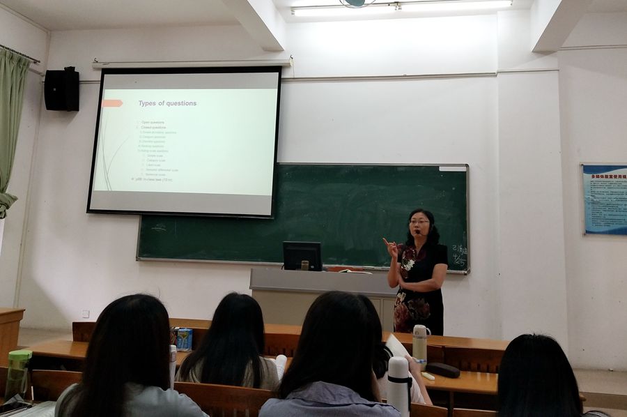 本次研讨课主讲老师为余敏副教授,课程主要内容是Unit 5 Designing a questionnaire。课堂上,余老师从问卷设计前的准备工作、问卷问题类型以及如何构建有效问卷三方面讲解如何设计一份高质量的问卷。余老师每讲完一个部分,就举出一个案例,组织学生展开讨论,分析其中的问题,并及时解答学生的疑问。最后余老师对各类型的问卷问题进行总结,对重点难点进行了详细的讲解,并分析它们的利弊。余老师全程用英语授课,授课目标明确,逻辑清晰,重点突出,师生互动较多,课堂气氛活跃。