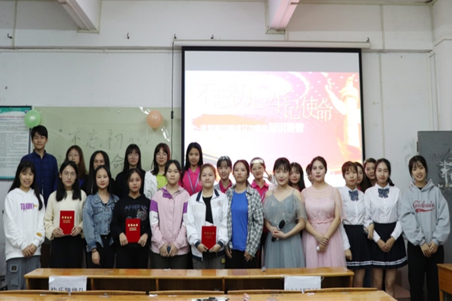 为激发外院学子学习理论知识的主动性和自觉性,营造以赛促学、学以致用的学习氛围,深切落实“不忘初心,牢记使命”主题教育,beat365官网于11月27日19:00在三教204展开“不忘初心,牢记使命”知识竞赛院级初赛,出席本次初赛的有学院学生会主席黄雨珊、副主席吴桐、陈文政。
