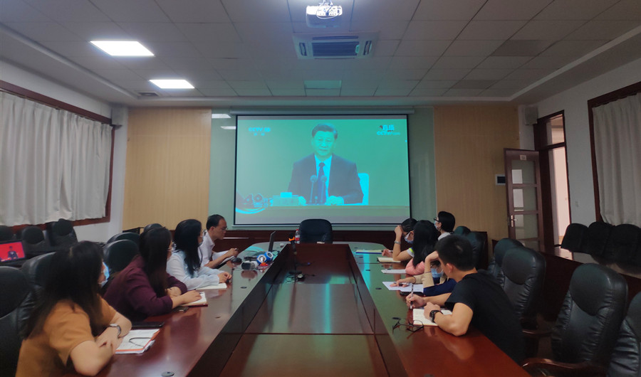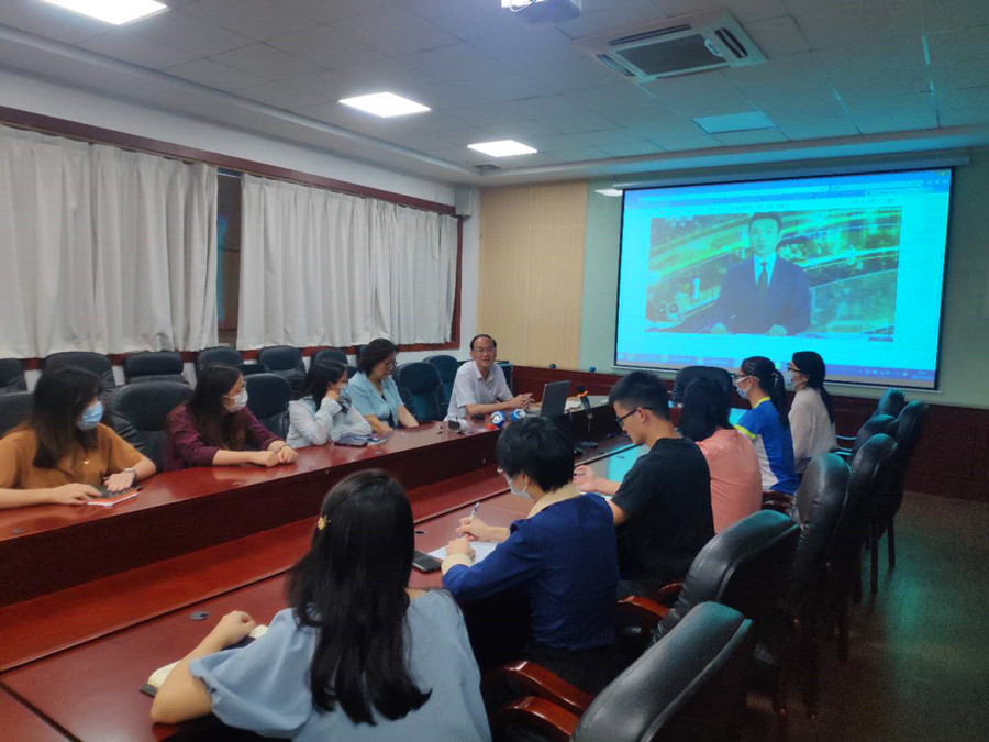 砥砺奋进四十载,继往开来谱新篇。10月14日上午,beat365平台官方网站党总支组织全体辅导员、教务员等党员干部在二政308会议室集中观看习近平在深圳建区四十周年庆祝大会的讲话,学院马蔚兰院长到场观看,会议由党总支书记徐超主持。