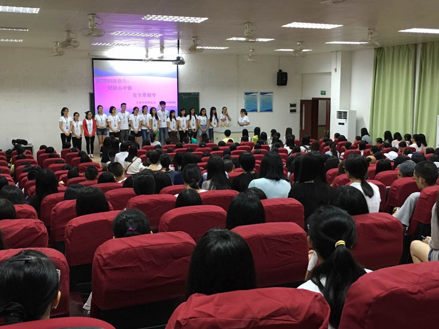 9月11日19:30,beat365平台官方网站于第一报告厅、第二报告厅顺利开展了以“纪律心中留 安全常相守”为主题的学籍与纪律管理新生教育讲座,beat365平台官方网站新生辅导员黄玉亭和孔建华、全体新生学长和七百多名新生一同参加了讲座,讲座由新生学长陈书娴和吴茂莹主讲。