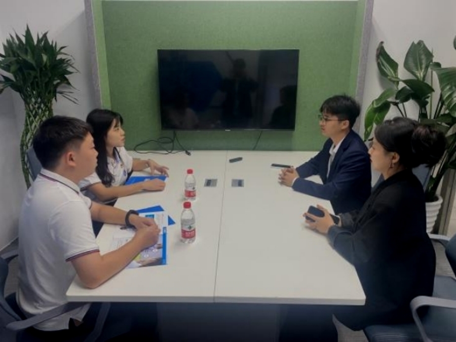 广东泰盈科技有限公司人事主管雷文辉对beat365官网一行走访表示热烈欢迎。双方就招聘需求与计划、就业体验与感受、薪资待遇与机会、工作内容与强度、职业发展与未来规划等内容进行深入交流。