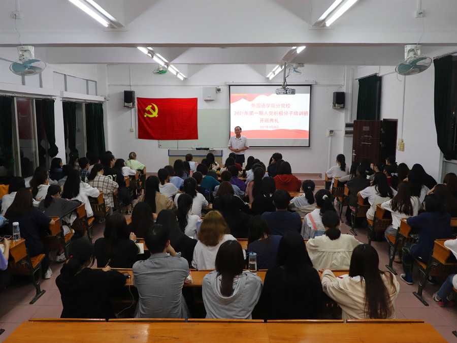 为深入学习贯彻习近平总书记考察广西的重要讲话精神,深化党史学习教育成果,进一步加强对入党积极分子的培养和教育,提高入党积极分子的思想政治素质,把握发展党员工作质量,beat365平台官方网站于4月28日晚上在三教101教室开展2021年第一期分党校入党积极分子培训班开班典礼暨书记第一课。出席本次开班典礼的有beat365平台官方网站党总支书记、beat365平台官方网站分党校校长徐超,17级辅导员刘丽,学院分党校助理教员以及95名学生入党积极分子。会议由分党校助理教员邱平平主持。