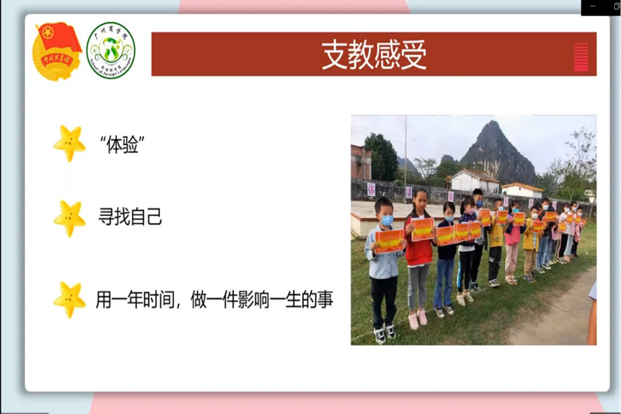 领悟到自我价值就在于,与学生们双向奔赴,给与彼此温暖。在教学中互相学习,与学生共同成长。她表示,支教,是一件很酷的事情。“用一年的时间,做一件影响一生的事”,这不仅能影响到自己,更是影响教过的学生。虽教授多门学科,但她孜孜不倦,赋予美好,授予希望。