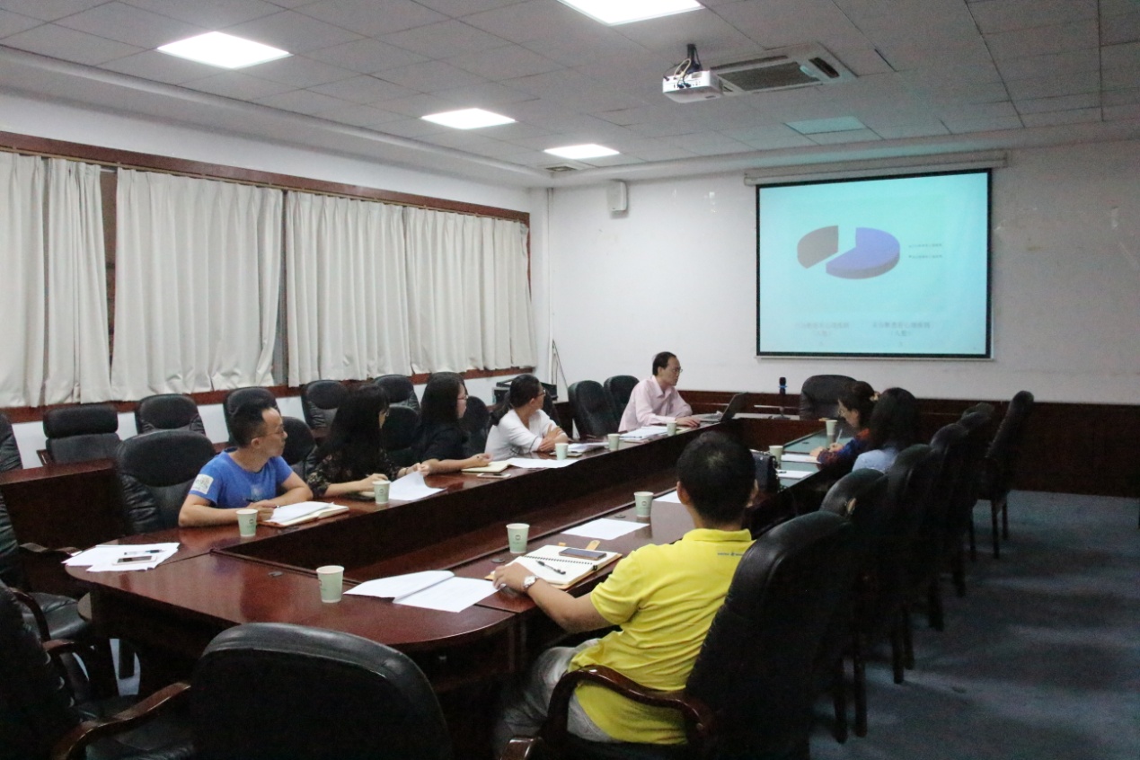 首先,徐超对张秋艳一行的到来表示热烈欢迎,他表示,近几年来,beat365官网始终坚持把心理健康教育工作纳入学生管理工作中,通过各种方式提高大学生身心素质健康,取得一定成效。接着,学院心理站副站长戴玮按照二级心理辅导站建设标准的要求,围绕领导重视、制度建设、队伍建设等17项资料的梳理情况逐一进行了汇报,既呈现了beat365官网在开展心理健康教育工作中所取得的成绩,也反映了工作中存在的问题与不足。徐超就beat365官网心理重点对象预警库情况进行了汇报,包括预警总人数、年级分布、等级分布以及高危学生现状。辅导员代表黄玉亭针对近期心理工作中遇到的困难,进行了个案汇报,并与督导人员进行交流。