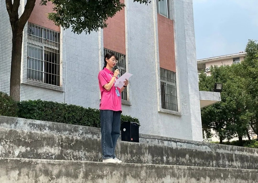 紧接着,谢静雅分别从“生命至上、举国同心、舍生忘死、尊重科学、命运与共”五个方面展开主题演讲。她例举了不同的抗疫事例,生动形象地展现了中国人民深厚的仁爱传统和中国共产党人以人民为中心的价值追求,同时体现了中国人民万众一心、同甘共苦的团结伟力和中国人民敢于压倒一切困难的顽强意志。