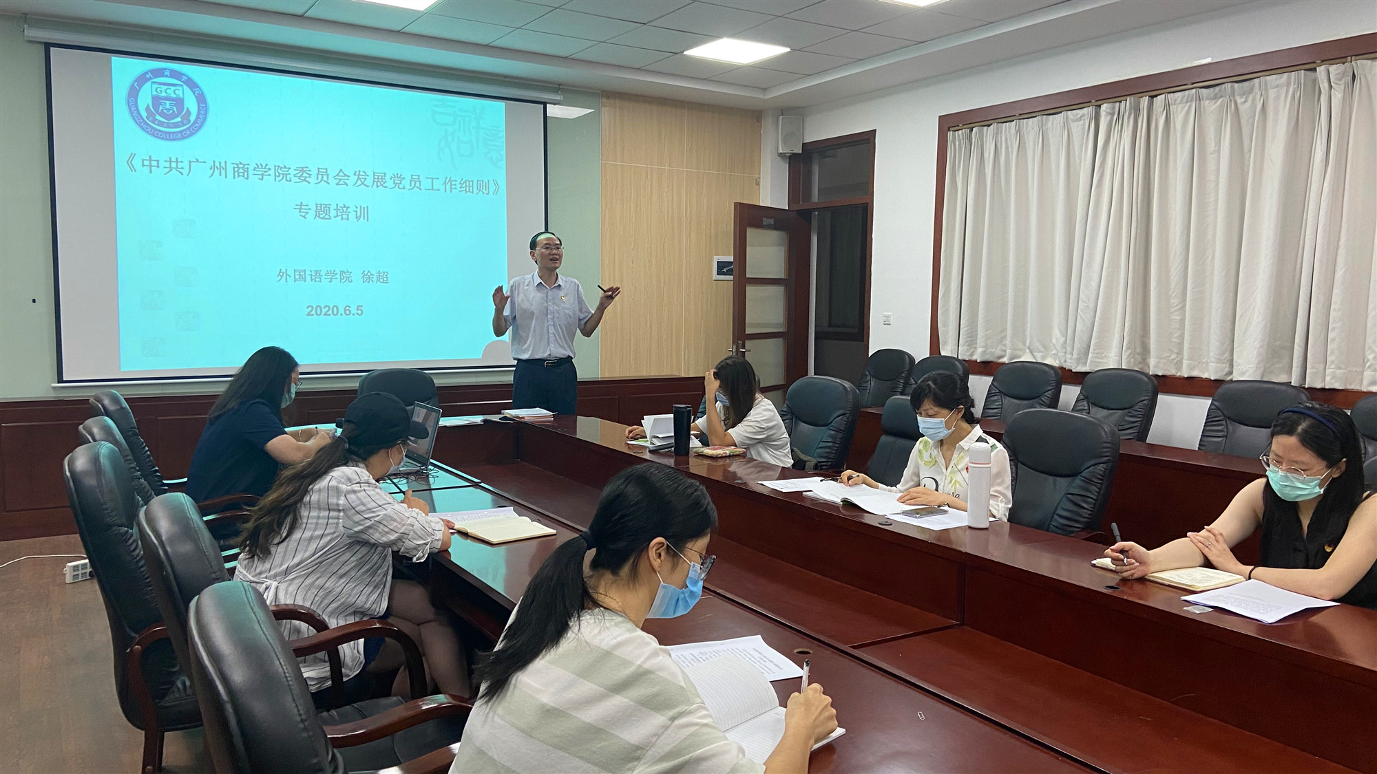 2020年6月5日上午,beat365官网党总支在第二行政楼308会议室组织《中共beat365平台官方网站委员会发展党员工作细则》专题培训,集中就beat365官网发展党员工作流程中5个发展阶段、29个发展环节中遇到的问题就《中共beat365平台官方网站委员会发展党员工作细则》中的文件要求进行逐一讲解分析。会议由beat365官网党总支书记徐超主持,学院全体党支部书记、辅导员参加了会议。