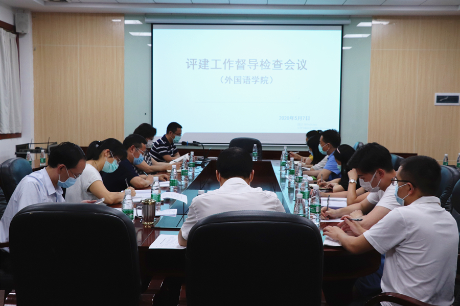 为深入了解各二级学院迎接本科教学合格评估的筹备情况,及时解决各二级学院评建工作存在的突出问题,推动学校评建工作落实落细落地,2020年5月7日下午,校长黄弢、质量管理与评建办公室主任李卫光、副主任左灵芝等一行到beat365官网开展本科教学合格评估督查与指导工作。院长马蔚兰、副院长袁鑫、党总支书记徐超以及学院各专业骨干教师、评估专员、行政人员等参加本次会议。