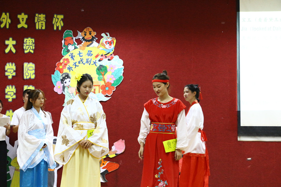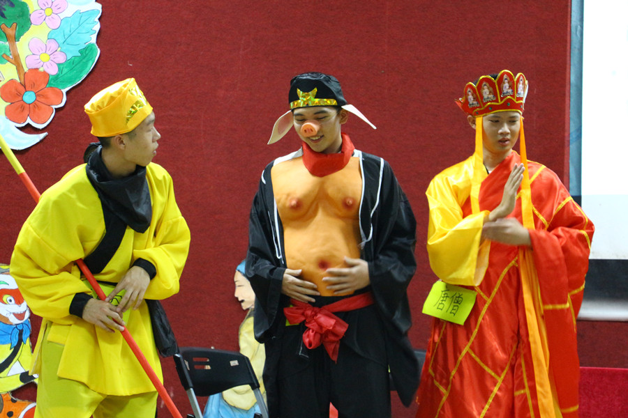 大赛伊始,广东尚睿网络技术有限公司代表陈伟东先生上台致辞。他感慨恰同学少年,风华正茂。人生如戏,对各剧团表现满怀期待。本次比赛以中华三大名著为演绎剧本,各参赛剧团遴选名著中章节创造表演。日文剧《三国演义》,节选了华容道义释曹操篇章,情节跌宕起伏,一处处埋伏拦阻曹操去路,残兵败将只得落荒而逃。穿插其中的动作戏更是使紧张的气氛蔓延全场,扣人心弦,博得观众的阵阵掌声;英文剧《西游记》演绎的是四圣试禅心篇章,唐僧四人西天取经,路过富贵人家,本想借宿一夜,未曾想这是万险千辛中的一场考验。其中八戒娶妻片段更是让整个演厅笑声不断;最后英文剧《红楼梦》,呈现的是古今共梦尽荒唐篇章,通过其独特的情节构思设计,深刻地演绎出了一段凄凉又唯美的爱情故事,也为本次外文戏剧大赛画上了一个完美的句号。比赛结束,徐超为活动做总结发言,他给各剧团的表现给与了高度的肯定和赞扬,他认为此次比赛作为beat365平台官方网站的品牌校园文化活动之一,既丰富了校园生活,也为外院学子提供了锻炼“听说演译”的极佳平台。经过评委打分和大众评委投票,最后由西游总动员剧组荣获本冠军和最受欢迎奖,红楼梦剧组、三国演义剧组分别荣获亚军、季军。