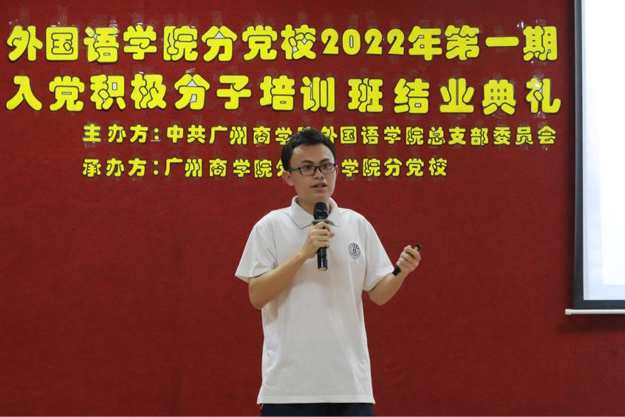 5月26日晚7点,beat365平台官方网站分党校在第一教学楼206举行2022年第一期入党积极分子培训班结业典礼。出席本次结业典礼的有:beat365平台官方网站党总支书记、分党校校长徐超,beat365平台官方网站党总支组织委员、分党校指导老师谢清玲,19级辅导员孙玉博、陈丽珊、蔡柳渊,20级辅导员蔡文蝶、丁洁、刘黄玲,21级辅导员李超、何沛瑾,出席典礼,本期结业学员参加典礼。本次活动由林泽、陈梓圻主持。