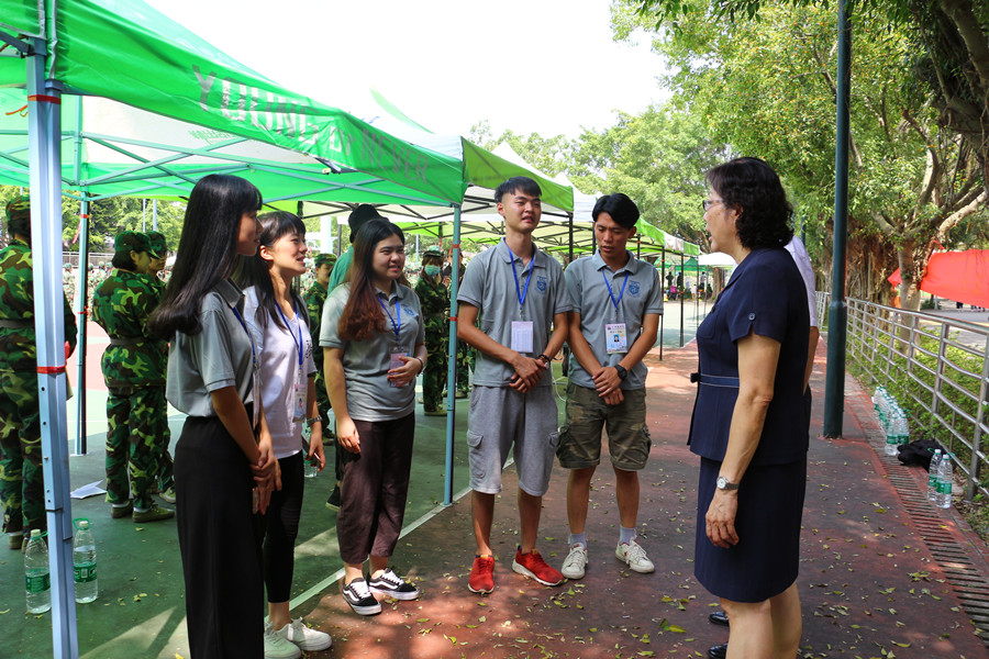 马蔚兰院长对二营全体教官表示衷心地感谢,并指出全院员统一思想统一行动,全力配合教官训练的需求,扎实做好军训后勤服务工作,确保各项军事训练课程顺利进行;紧接着,马院长对二营500多名新兵们提出了两点希望:一、希望全体参训学生克服时间紧、任务重、天气热等严峻考验,积极调整心态、转变角色、不畏艰难,出色圆满地完成了军训期间的各项任务;二是希望全体参训学生能够在本次军训中,培养坚忍不拔的意志力、军令如山的组织纪律性、如钢铁般的身体素质和内忧外患的国防意识。接着,马院长一一走访了beat365平台官方网站各个医疗服务点、凉茶摊点等各后勤服务岗,对积极参与军训后勤服务工作的各位学生干部表示感谢,并提出打造外院军训精致化服务团队的要求,为军训工作提供细致有爱的后勤保障。