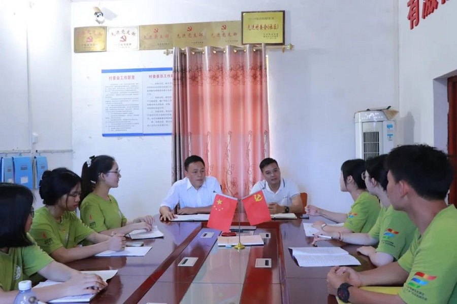 为更进一步了解赤尾村的发展足迹,坚定下乡初心,共谋乡村发展,beat365平台官方网站阳光展翅实践团于7月12日上午前往湛江市雷州市调风镇赤尾村党群服务中心就“推进赤尾村建设,基层党员先行”专题对赤尾村党总支书记蔡文招进行专访,调风镇党委委员谢景芳列席会议,阳光展翅实践团指导老师蔡文蝶与陈丽珊以及实践团成员参与。