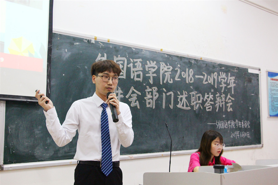 主持人简要介绍了述职要求之后,12个部门按照秘书处、公关外联部、学习部、生活部、宣传部、就业服务部、权益部、社团部、自律委员会、网络部、文艺部、体育部的顺序依次上台述职。他们结合工作性质,生动全面地展示了过去一年的工作职责、队伍建设、工作成果以及心得感悟,并对下一年工作提出了规划与设想。在答辩环节中,部长们根据实际情况,有条理性地作出了自信的回答,展现了新时代学生干部良好的精神风貌。