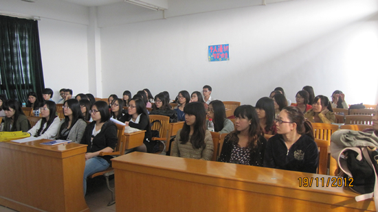 2012年11月19日下午,外语系日语教研室主任邓亚晔老师特意邀请了两位校友为我系09级日语专业毕业生开展就业工作经验交流会。本次交流会分两个环节,第一环节主要是由两位校友分享其毕业后的工作历程和工作经验,介绍其工作岗位和主要工作任务,让学生对未来职场工作有一个宏观的认识,同时鼓励学生在求职过程中端正自己的心态,找准位置,时刻保持一颗积极进取的心。