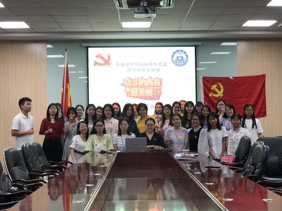 为落实“不忘初心、牢记使命”主题教育文件精神,深入推进主题教育的“三重温”活动,10月15日19:00,beat365平台官方网站16级学生党支部在第二行政楼108会议室举行以“奋斗的青春最美丽”为主题党日活动——优秀共产党员说。党支部书记黄玉亭、副书记戴玮和全体学生党员共聚一堂,一起倾听优秀学生党员代表16级商务英语专业郭丹宜和英语专业陈小婉的奋斗故事。