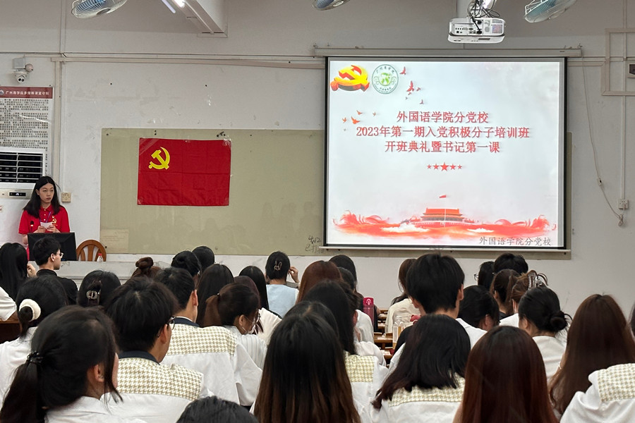 为进一步发挥基层党组织战斗堡垒作用,加强入党积极分子的培训工作,提高入党积极分子的理论修养,beat365平台官方网站分党校于4月12日晚上在第三教学楼206教室开展2023年第一期入党积极分子培训班开班典礼暨书记第一课。出席本次开班典礼的有beat365平台官方网站党总支书记、分党校校长徐超,党总支组织委员、分党校指导老师谢清玲,分党校全体工作人员及93名入党积极分子。