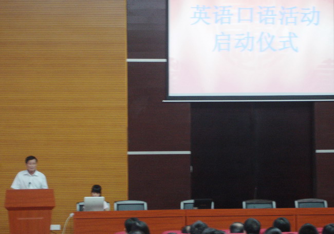 2008年10月16日下午14:30,学院“英语口语训练活动启动仪式”在学术报告厅隆重召开。院长李运生教授、学院党委梁华南书记、吴伯喻副院长、学院党委谭马利副书记和院长助理周力等学院领导出席大会,各系部处领导和学工办老师也参加了大会,外语系学工办主任欧莹老师主持启动仪式。