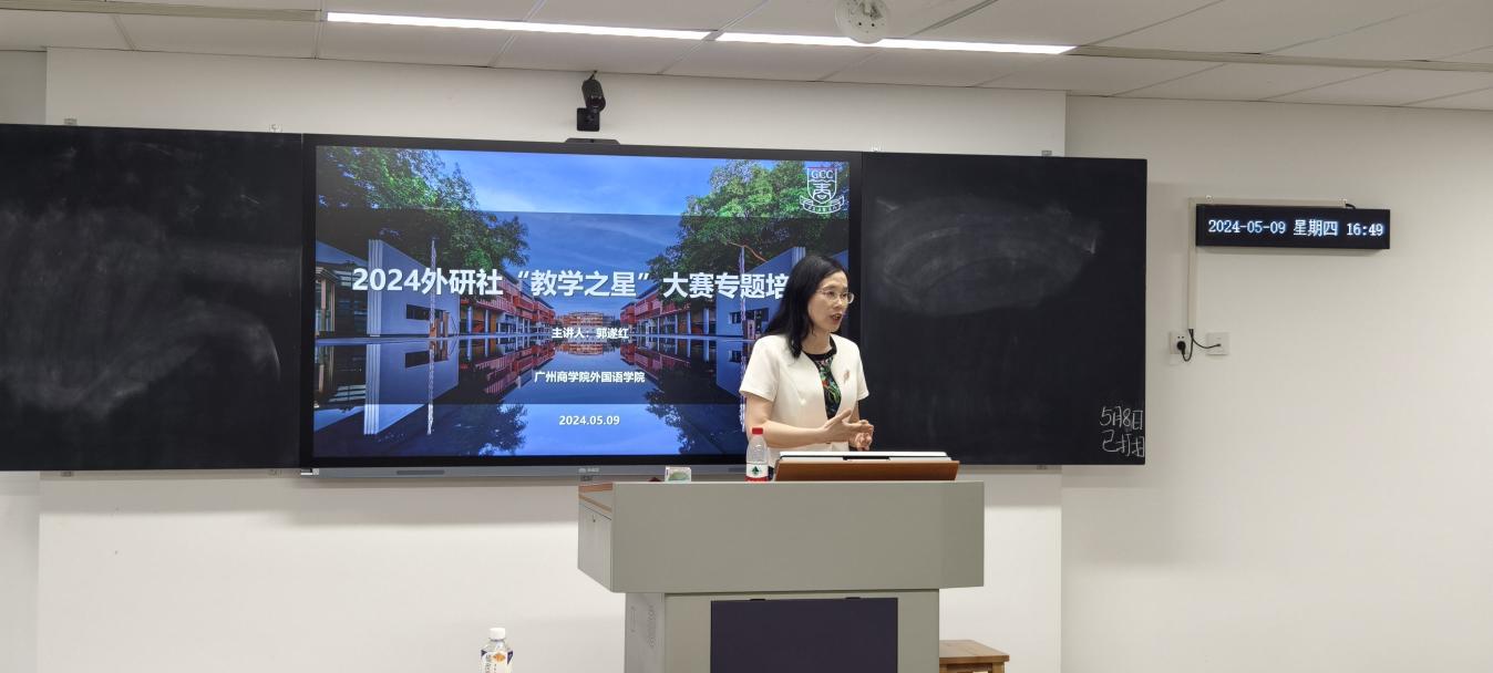 5月9日下午,beat365平台官方网站在八教407教室举行了第七届青年教师教学大赛暨2024年外研社“教学之星”大赛专题培训讲座,由beat365平台官方网站院长郭遂红教授主讲,参加第七届青年教师教学大赛以及2024年外研社“教学之星”大赛的老师和学院部分教师参加了专题培训。本次专题培训讲座也是beat365平台官方网站首届外语文化节之名师讲坛以及beat365平台官方网站青年教师教学能力提升工程讲座之一。