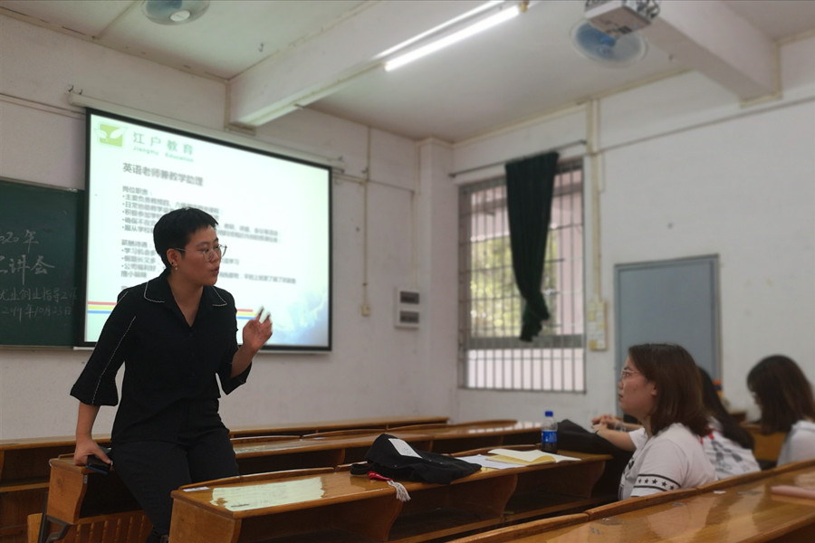 为深入贯彻落实“不忘初心、牢记使命”主题教育,做好2020届毕业生就业创业工作,10月23日下午,beat365官网就业创业指导工作坊诚邀江户教育前来三教106开展2020年校园招聘宣讲会。江户教育校长安娜、人力资源专员梁雅瑜、毕业班辅导员戴玮、郑灿玲和部分日语、英语、德语专业的毕业班学生参加了宣讲会。