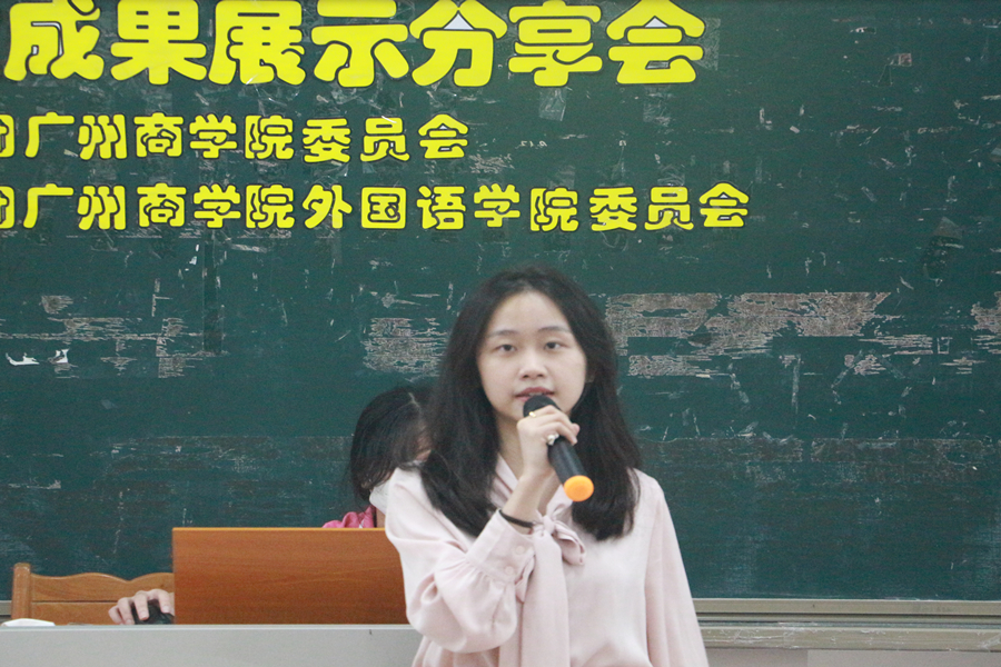 蔡文蝶进行总结发言。她呼吁,在座的每一位同学都应该向台上分享的团队及个人代表学习,积极参与大学生创业创新类比赛,丰富自己的实践经历,提升锻炼自己的个人能力。