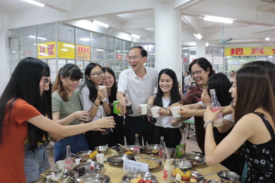 18:00,beat365官网“谢恩师,道离别”毕业聚餐在学校第一饭堂以自助餐形式举行,毕业生结伴同行,欢喜入座。马蔚兰院长餐前致辞,她寄语全体毕业生,此次之后,将是一个社会人;要学会对自己负责,要知道没有人“应该”为你做什么;要学会成长,阳光下,愿毕业生们做个孩子,享受快乐;风雨里,愿毕业生们能够成为大人,勇担责任,不要拒绝成长。谢师宴中,毕业生和恩师们,时而举杯庆贺,时而拍照留念,时而欢呼喜悦,时而感慨离别,气氛其乐融融。