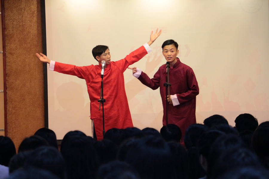 19:30,beat365官网2018届毕业生再次齐聚歌舞厅,以毕业晚会的额形式开启制造离校前的美好回忆。开场的回忆录《那些年,我们专属的美好回忆》,暖心而温情,一帧帧画面,勾起了军训艰苦而难忘的回忆,倒映了班级相伴四年的同窗情谊和回放了恩师传道授业解惑的点点滴滴。在音乐和灯光和画面融合中,光影剧《我们四年的宿舍生活》勾勒了大学四年的宿舍情,独特而珍贵。小组唱《毕业礼》缓缓响起,改编的歌词,唱出了师弟妹对毕业生的深深祝福。相声《忆校园》以滑稽幽默的语言呈现出毕业生大学四年活跃在校园的样子。舞蹈《c哩c哩》以炫动的舞姿留住了毕业生阵阵掌声。16级余栩同学的《双截棍》表演更是点燃了全场的热情。在《牛津词典》幸福页码互动中,毕业生纷纷表达了对母校恩师的感谢、对班级同学的怀念和对舍友的依依不舍。