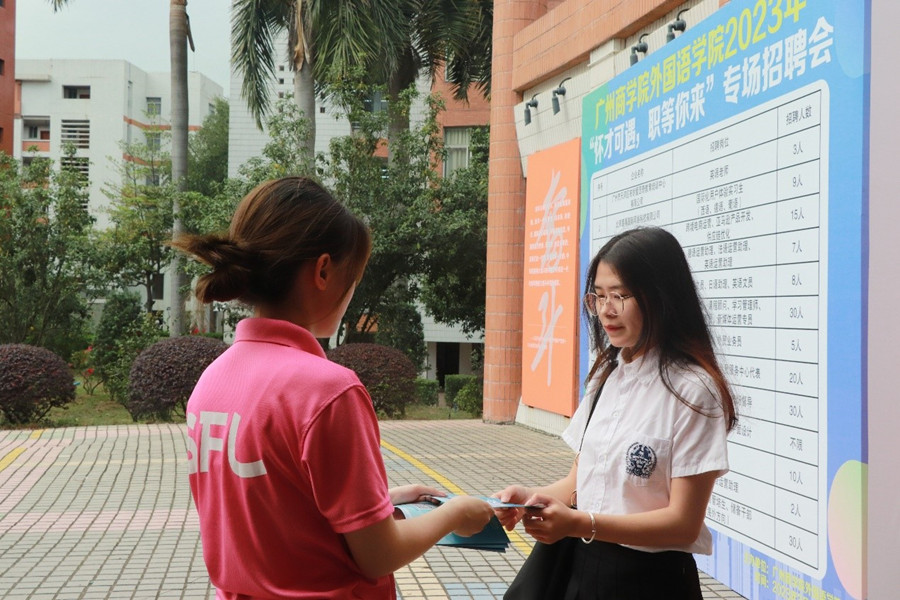 毕业生们以及有实习需求的同学们身着正式服装、携带个人简介踏进了招聘会的现场,从容地回答面试官的问题,展现广商学子的风采。beat365平台官方网站工作人员做好前期准备,协助面试官相关工作,维持现场秩序,传递着外院人的热情。