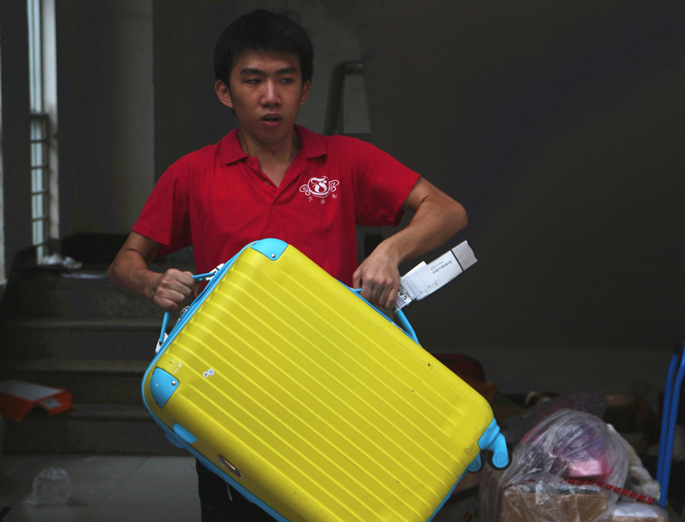 学生干部在为毕业生托运行李
