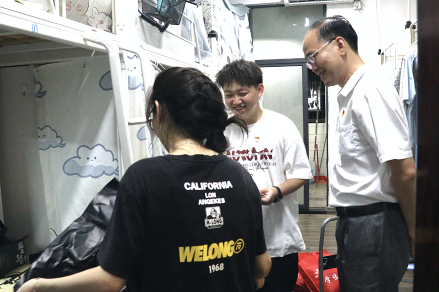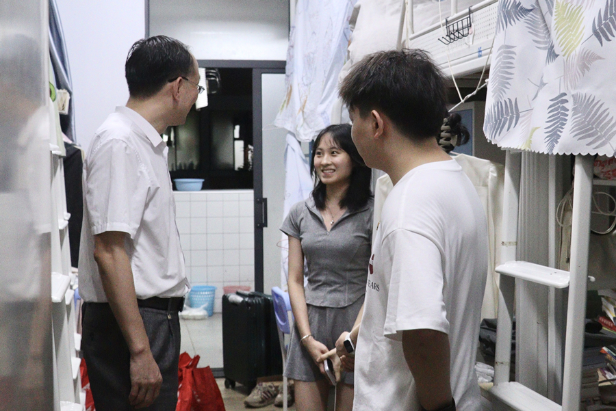 为进一步做好2024届毕业生离校前的教育、管理和服务工作,确保全体毕业生安全、平稳离校,6月22日晚,beat365平台官方网站党总支书记徐超带领辅导员老师们,积极深入毕业生宿舍,倾听毕业生心声,为即将毕业离校学生送去关怀和问候。