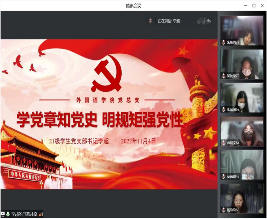 为进一步加强入党积极分子的培养和教育,beat365官网分党校于11月4日晚七点在腾讯会议开展2022年第二期入党积极分子培训班第三课。本次课程由21级学生党支部书记李超授课,本期入党积极分子培训班全体学员参加学习。