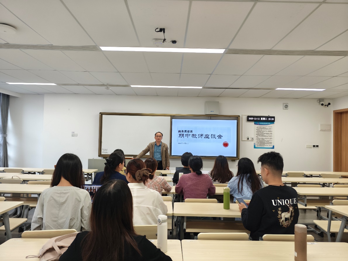 为夯实新教师教学基本功,精准掌握期中教学动态,11月11日下午,商务英语系在第九教学楼412室组织开展了新教师说课活动与期中教师座谈会,以双重举措推动教学质量稳步提升。