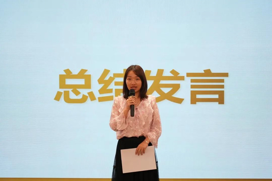 何沛瑾总结发言。她对选手的表现给予了高度的评价,充分肯定了选手们活动参与的积极性、演讲才能和良好的精神风貌。同时她希望同学们在日常生活中继续落实节约粮食行动,树立榜样意识,充分发挥先锋模范作用。