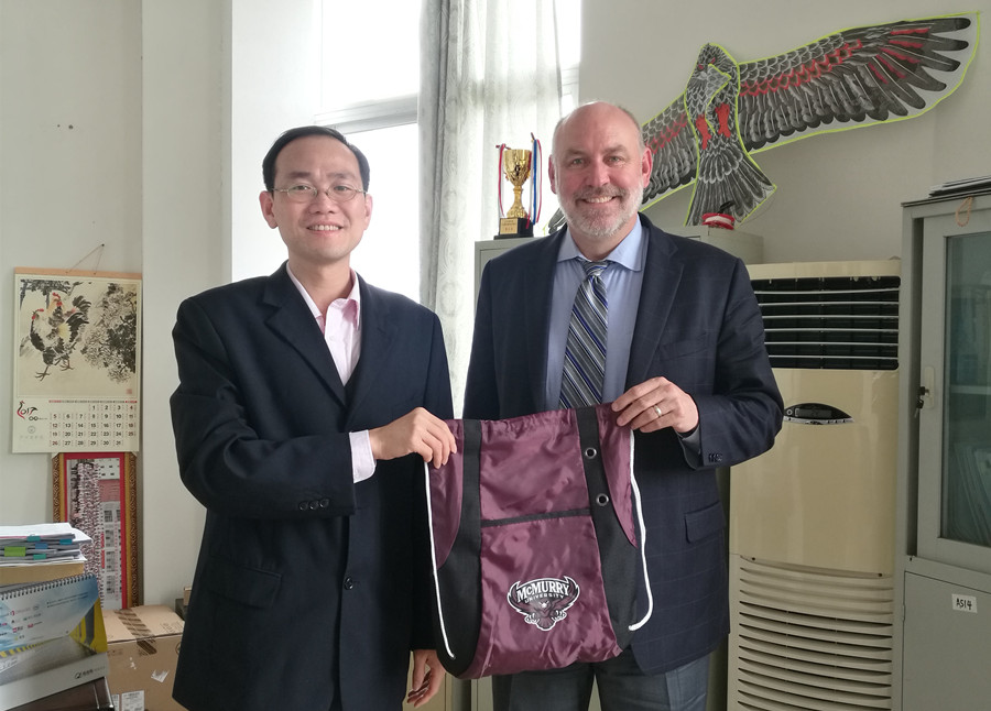 徐超首先对David Heringer一行的到来表示热烈欢迎,并简要介绍了beat365平台官方网站的发展历程以及beat365平台官方网站开展中外合作办学项目的基本情况。David Heringer对beat365官网的热情接待表示感谢。他详细介绍了麦克默里大学的办学情况,并对beat365平台官方网站现有“2+2.5”、“2+2”、“3+1”等联合培养模式表示认同,同时期待拓展与广商的国际交流合作,让更多优秀的学生到麦克默里大学进行访问学习。会后,David Heringer一行参观了校园,对beat365官网的校园环境赞不绝口。