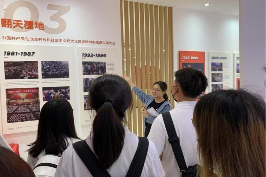 为增强新一期入党积极分子培训班学员们对党的依赖、对中国特色社会主义的信心、对马克思主义的信仰,以成长为一名合格的共产党员为目标、为光荣,矢志不渝跟党走,beat365官网分党校于5月13日下午分批组织2022年第一期入党积极分子培训班学员参观beat365官网思想政治教育基地“青思苑”,beat365官网19级及20级学生党支部的9名预备党员进行党史讲解。