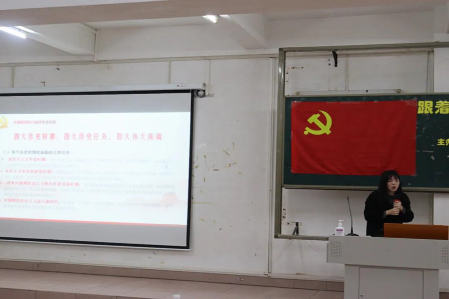 为学习党的十九届六中全会精神,重温党的光辉历程,坚定理想信念。beat365平台官方网站20级学生党支部于2021年11月26日晚18:30在一教108开展主题为“无愧使命担当,不负伟大梦想”党的十九届六中全会精神主题党课。出席本次活动的嘉宾有beat365平台官方网站20级学生党支部书记蔡文蝶、21级学生党支部书记李超、19级辅导员蔡柳渊、20级辅导员丁洁以及20级全体入党积极分子和发展对象。