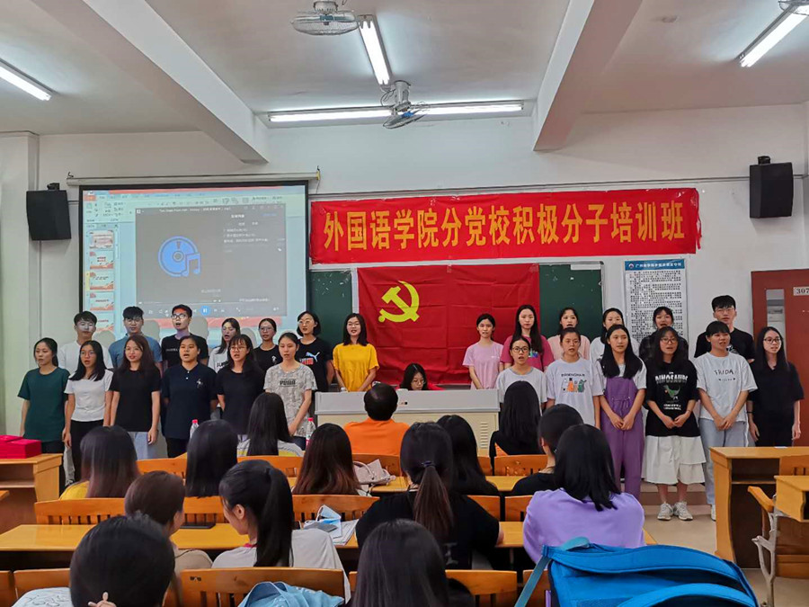 在结业典礼上,首先举行的是在上一年度辛勤付出的四位2017级助理教员的退任仪式。助理教员退任仪式结束后,18级的全体学员带来了精彩的汇报表演《我和我的祖国》大合唱, 17级、19级的学员们也表演了感人泪下的诗朗诵节目《感触》。学员们精彩的表演既展示了他们通过积极分子培训班学习后焕然一新的精神面貌,也体现了学员们坚定入党的决心和毅力。