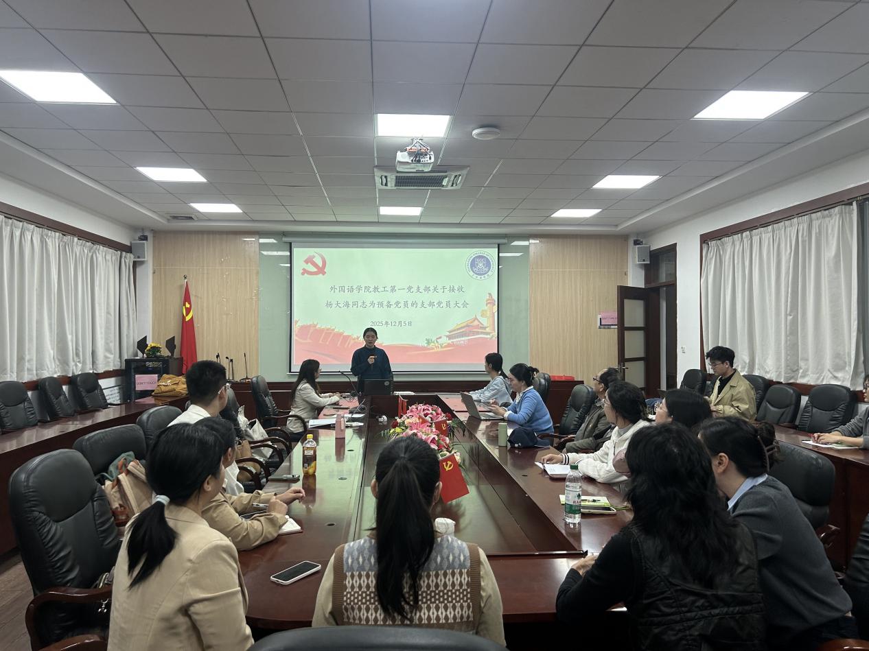 与会正式党员在听取汇报和介绍后,本着实事求是、认真负责的态度,对杨大海能否入党进行了充分讨论。教工党员邓倩璐表示,杨大海老师工作积极、勇于担当,曾积极参与学校迎新服务,在2024年青年教师创新比赛中荣获一等奖,并赴德担任本校运动员随队翻译,展现了优秀的专业素养与奉献精神,是德语系青年教师中的优秀代表,非常值得推荐加入中国共产党。教工党员揭艺涵指出,杨大海老师不仅在教学科研中成绩突出,在生活中也乐于助人,积极联系群众,耐心指导同事与学生,体现了共产党员应有的品质,因此赞同接收杨大海老师为预备党员。杨大海认真听取了大家的意见和建议,并作了诚恳表态。