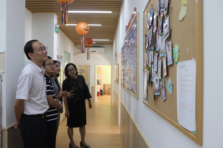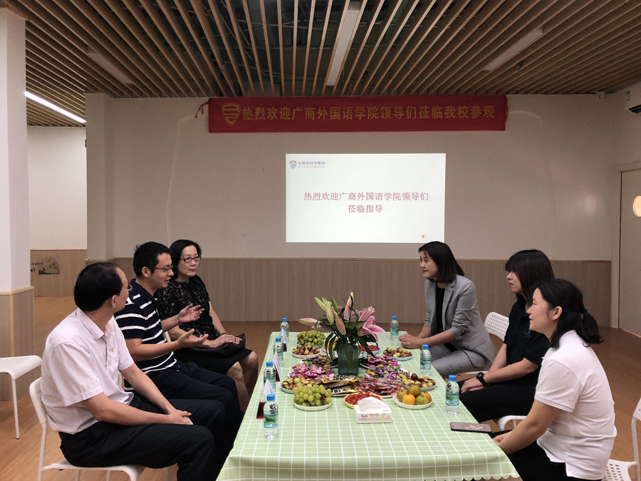 广州市爱因奇教育咨询有限公司董事陈丽华热情接待了马蔚兰一行,陪同参观了布朗爱因奇少儿英语培训中心总部校区和“乐点熊”早教中心,详细介绍了教学情况、教学设施并展示了自主研发的少儿英语教育的教材课件。马蔚兰一行人还与公司有关人员进行了座谈,其中包括已在该公司就业的10名beat365平台官方网站毕业生。