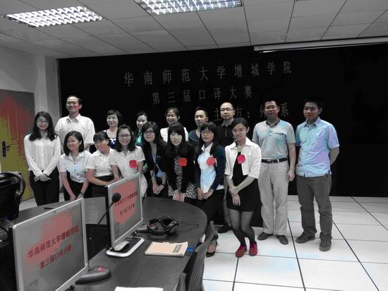 2013年10月25日下午,由外语系主办、翻译协会承办的华南师范大学增城学院第三届口译大赛(决赛)在图书馆同声传译室成功举行。