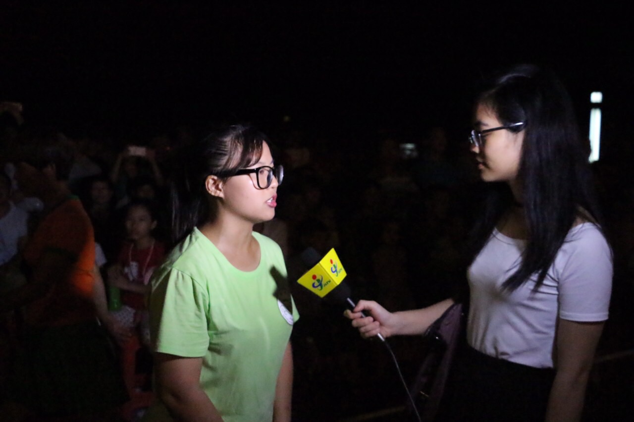 阳光展翅实践团副队长邵绮雯接受广东蕉岭电视台记者的采访
