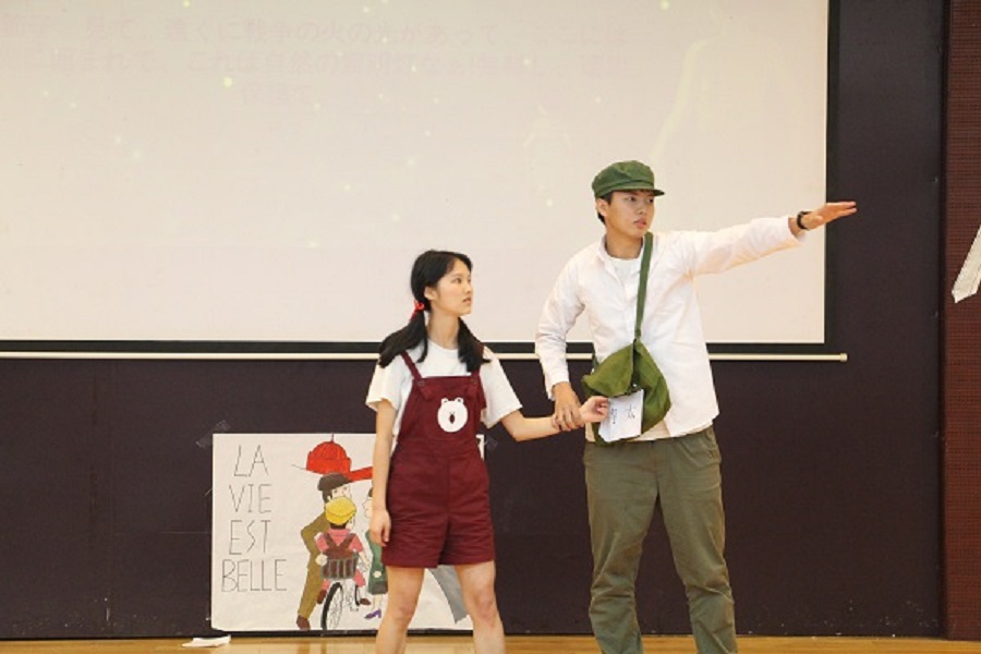 比赛正式开始,首先上场的是由英语节目《花木兰》,队员们用流畅的英语发音和生动的动作姿态演绎出个性鲜明、坚韧不拔、替父从军的女英雄花木兰的角色,深受评委和观众的喜爱。第二个节目是德语节目《美丽人生》,他们用专业的语言讲述了犹太人在硝烟纷飞的年代里危险的境遇,塑造了伟大与无私的父亲形象,在场的评委与观众都被其跌宕起伏、感人肺腑的故事情节深深打动。最后上场的是日语节目《萤火虫之墓》,舞台上再现了一场残酷的战争给原本生活富裕、幸福美满的一家人带来的悲哀和伤痛。场上动人的演绎,不觉让人心生感慨。