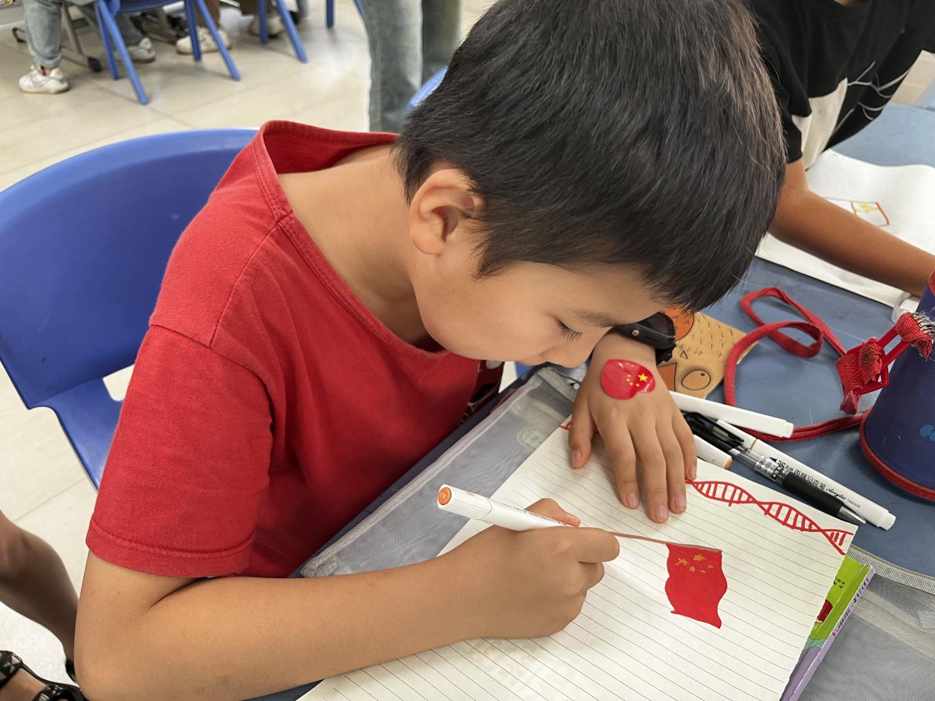 beat365平台官方网站学生国防教育协会成员李翔以《小英雄雨来》红色教育视频引入课堂,通过运用生动形象的话语,带领孩子们认识我国“国旗”与“国徽”的相关组成部分,课堂中融入“爱国画卷”绘画活动让孩子们深刻地认识到传承红色基因,发扬红色精神的重要性,积极关注国家安全形势,增强危机意识与防范意识,为实现国家繁荣与安定贡献青春力量。beat365平台官方网站辰星启航实践团成员曹楚怡从“三军”引入国防安全教育知识,通过知识问答、军体拳动作模仿加强孩子们对于国防的认识,给予新时代少年深刻启示:只有拥有强大坚固的国防力量、拥有一支有战斗力的军队,中华民族伟大复兴才能有安全保障,人民才能拥有和平安宁的生活环境。