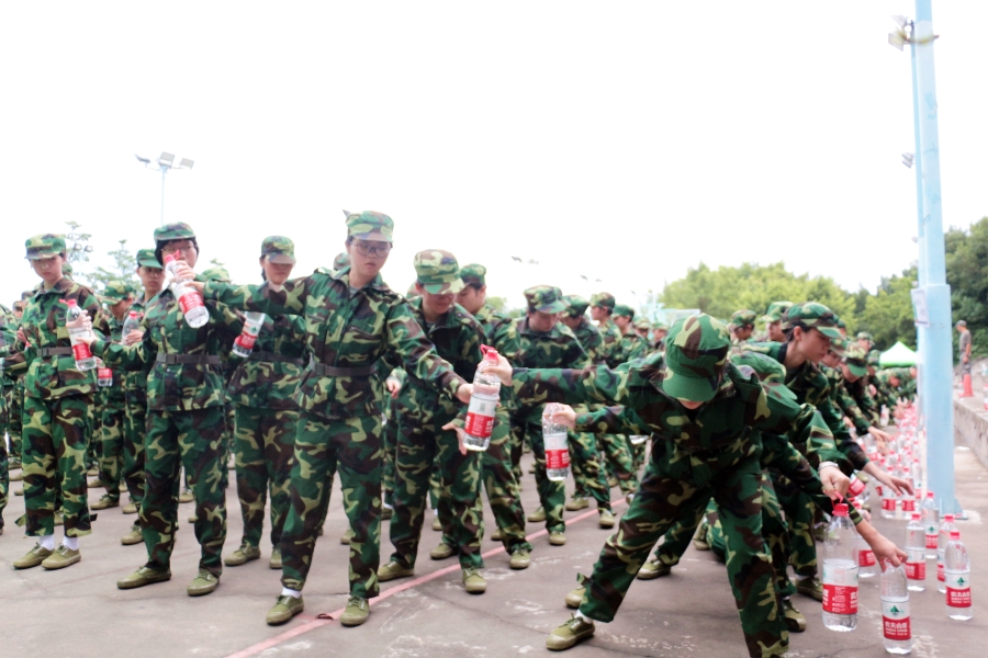 新生在训练摆放水瓶