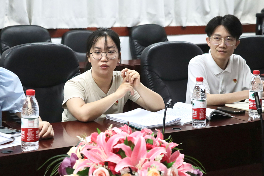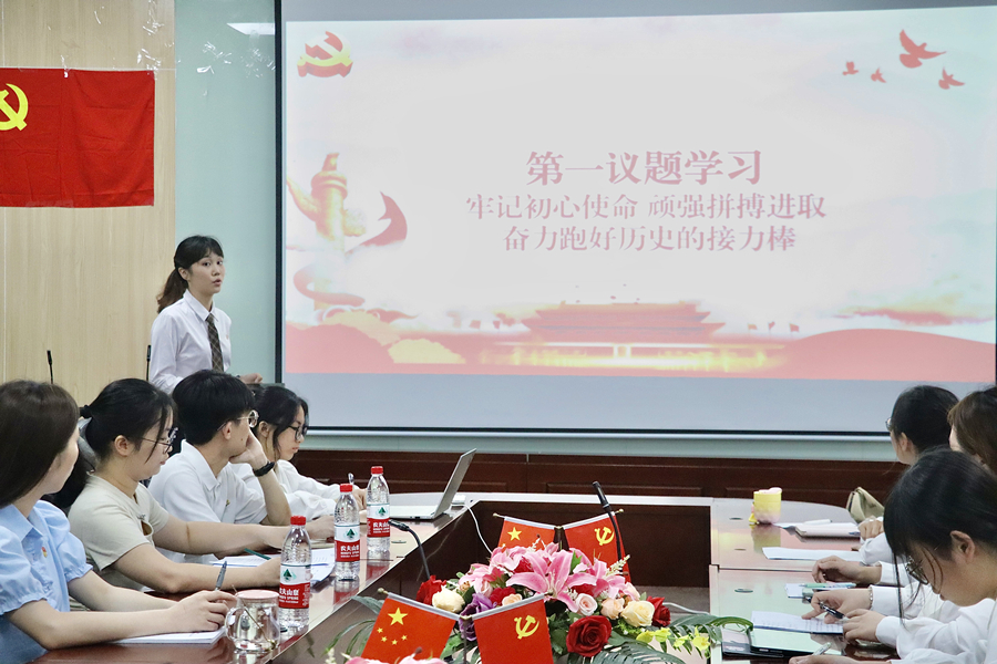 蔡沅彤带领全体成员进行第一议题的学习。她领学了习近平总书记作出重要指示,强调我们要自觉做党的创新理论的笃信笃行者,自觉做对党忠诚老实的模范践行者,自觉做良好政治生态的有力促进者。